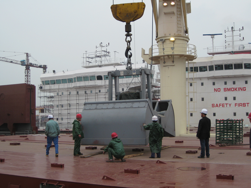 用于抓取煤炭、礦粉等最大粒度不超過100mm的細粉狀散貨物料的裝卸。適應各種型式的起重機,尤其是集裝箱岸橋、船用格林吊機等。